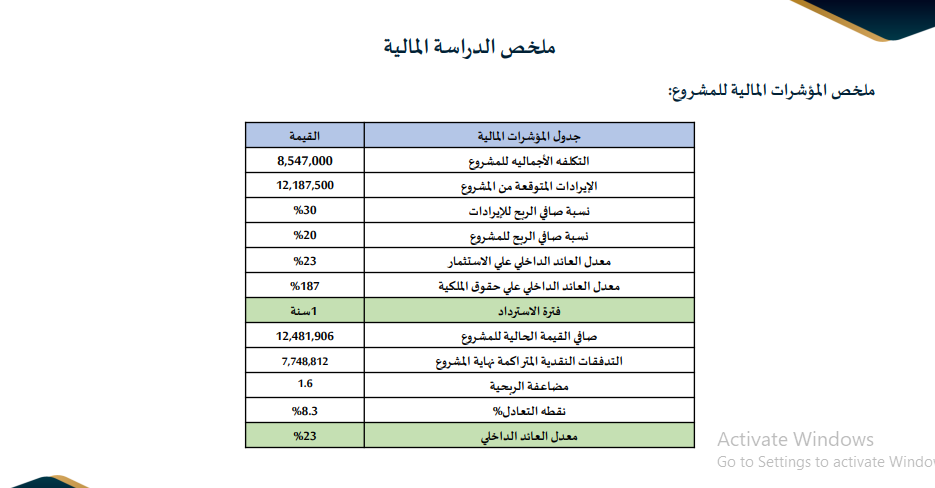 سادسًا تحليل مالي للمشروع: